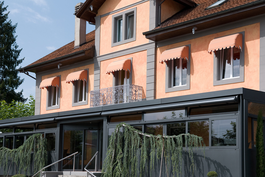 Un support publicitaire idéal pour les boutiques, cafés ou autres magasins. Le nom ou logo de votre commerce peut être imprimé sur la toile ou le volant de votre store toile. La construction est constituée d'élégants profilés en aluminium revêtus de toile acrylique ou PVC. Selon le modèle, le store corbeille peut être proposé en version fixe ou mobile avec corde ou moteur électrique.